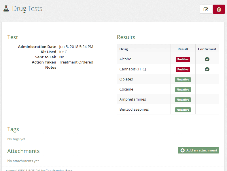 Attachments are now available for drug tests, allowing you to upload and associate testing materials with the tests.