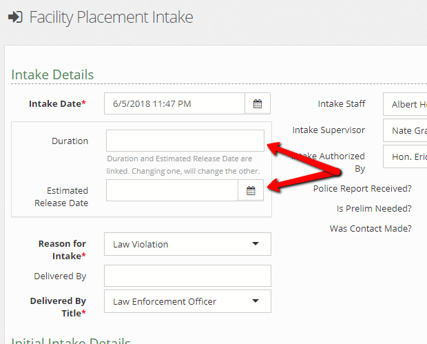 We heard that some of you know a client will be there for 30 days (or a set number of days), while others simply know the release date. Based on users’ suggestions we’re now allowing you to enter either duration OR estimated release date. Changing one value will automatically change the other. No more guessing at a duration to get the right date.