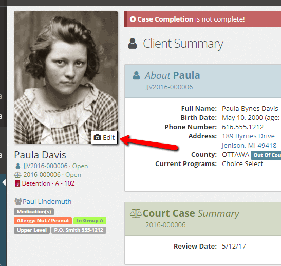 As before, the new Mugshots is located in the client’s General Profile section, under the Client Profile section. You can also get there by clicking the “Edit” button that appears on the client header mugshot as shown in the screen shot above.