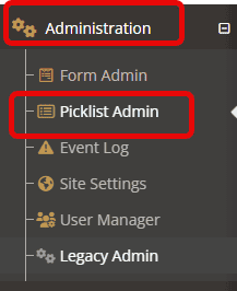 Step 1: From your side menu, choose the “administration tab” followed by “picklist admin.”