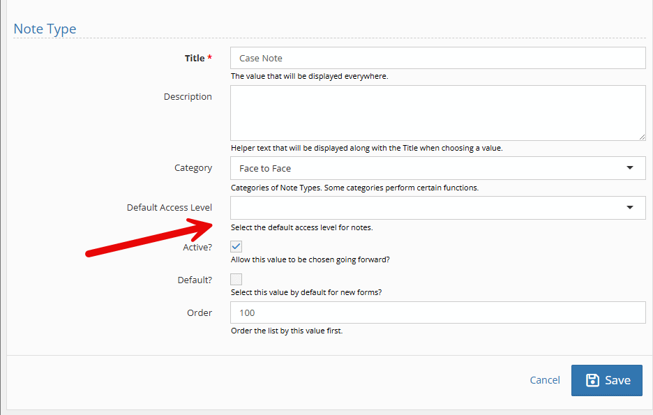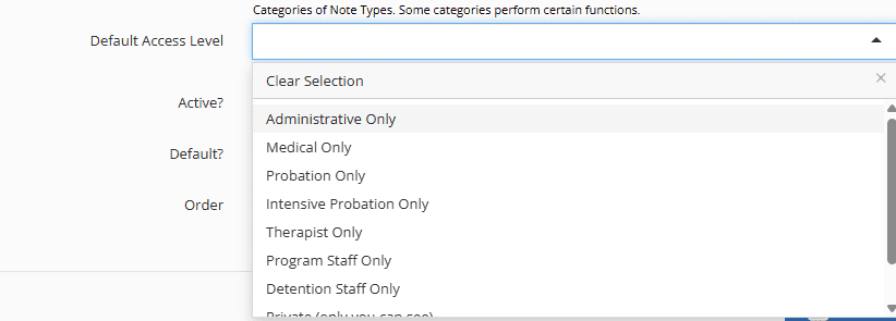 For many organizations, having the ability to determine which user groups within YouthCenter have viewing access to particular notes is an important security measure. Previously, team members and administrators had to manually set their access level each time a new note was created. Now, administrators can set a default access level for each note type. It is important to note that this is the default for new notes; existing notes will retain their previously assigned access level. Additionally, the access levels can be adjusted before or after saving the note if changes need to be made.