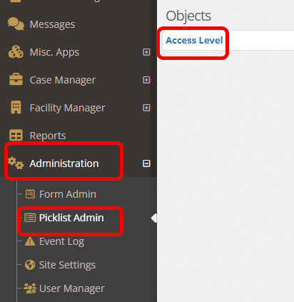 Step 1: Select “Administration” followed by “Picklist Admin.” Search and select “Access Level.”