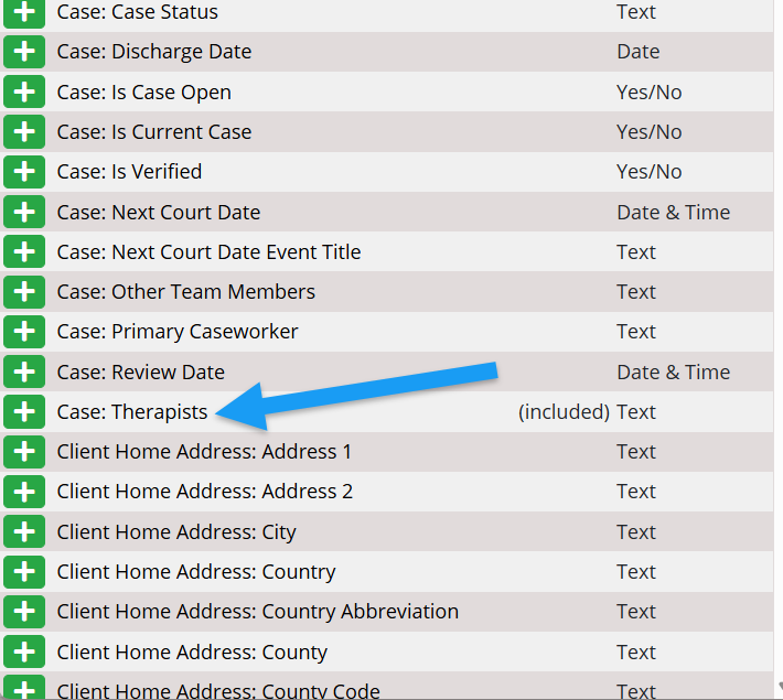 Step 5: Use “ctrl F” to find and choose the green plus button to the left of the “Case: Therapist.”