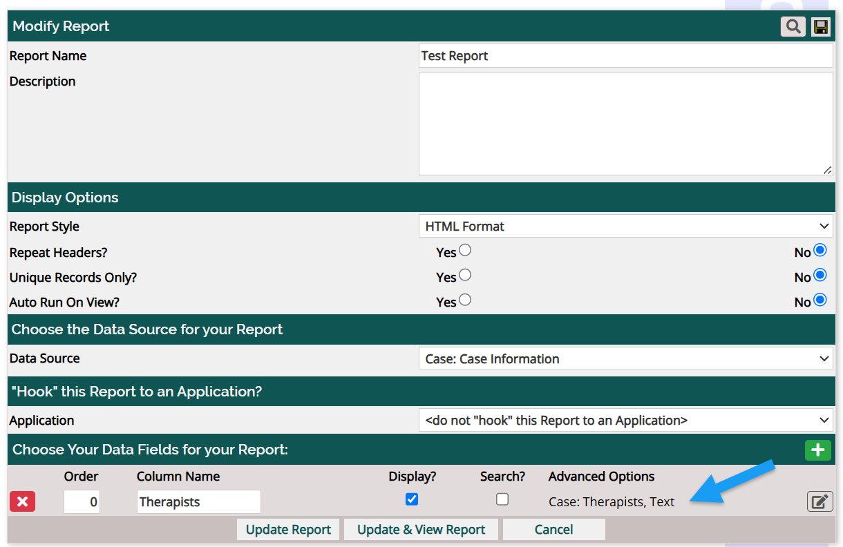 To help with reporting purposes and requests from users, a “therapist” data field has been added to multiple data sources.