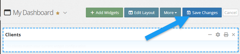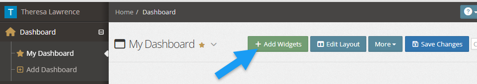 Step 2: To add a new widget with this filter, select the green “Add Widgets” bar. OR to modify an existing widget, skip to step 3.