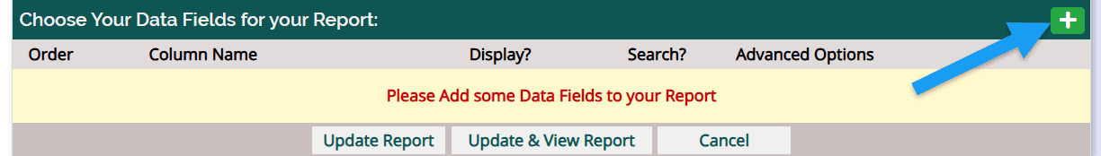 Step 4: Choose the green plus to Add Data Fields to your Report.