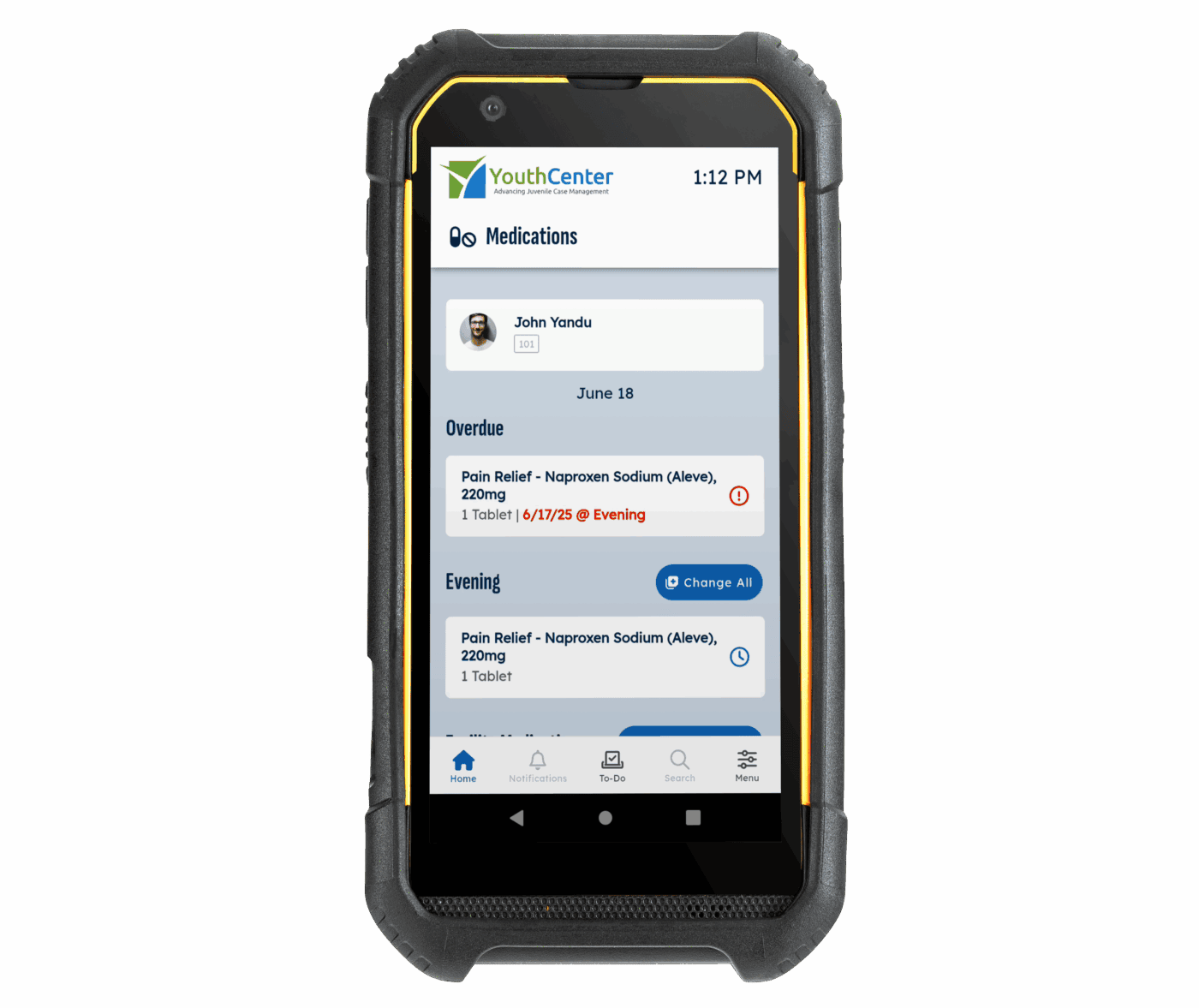 SafeGuard helps staff safely distribute and track medications in juvenile detention facilities. Optional wristband scanning confirms the right youth before each dose, reducing errors and improving accountability. Staff can access medication schedules and facility-approved meds on the device, log distributions in real time, and capture staff and youth signatures. All entries are time-stamped and automatically synced with YouthCenter, supporting accurate records and streamlined workflows.